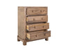 4 Drawer Chest. Bring the beauty of nature indoors with the Atenas Bedroom Set. Experience the harmony of style and functionality. Made from Mango and Melina wood, it features a multi-step lacquer finish that provides a smooth and polished appearance, making it not only aesthetic but also easy to maintain. The natural brown finish accentuates the wood's unique grain patterns, guaranteeing that each item is unique. The Atenas Chest features four drawers for ample storage. The simple wood-squared pulls on the drawers blend seamlessly with the overall modern rustic design. Standing on sturdy legs, this dresser provides stability and a touch of rustic charm, perfect for elevating any bedroom decor.