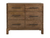 6 Drawer, Dresser. The Merida Collection features an exquisite bedroom set that perfectly fuses sustainability and design, embodying eclectic modern style. Made from environmentally friendly mango and melina wood, it combines beauty and functionality to enhance your space. The brown finish highlights the natural elegance of the wood, creating a serene and inviting atmosphere. The dresser features a minimalist design characterized by clean lines and a rectangular shape; it not only offers practical storage solutions but also enhances the aesthetic appeal of your bedroom with its timeless charm. The dresser stands on four sturdy legs, ensuring stability and durability. The Merida dresser is a versatile addition that complements any bedroom décor