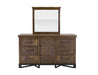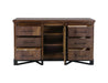 6 Drawer, 1 Door Dresser. Crafted from parota and engineered walnut wood, this dresser showcases timeless beauty and exceptional durability. The Walnut Collection features a translucent multi-step lacquer finish in a rich reddish-brown tone, accentuating the wood's natural beauty and grain. The dresser includes six drawers and a central cabinet with two doors and fixed shelves, offering ample storage. The trim textured design adds a distinct touch of sophistication and style to the collection. Transform your bedroom into a stylish sanctuary with the Walnut Bedroom set, where exceptional craftsmanship meets modern design.