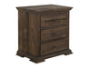 3 Drawer, Nightstand. Introducing the exquisite Desire Nightstand, expertly crafted from solid wood to enhance both style and functionality in your space. This Nightstand features a sophisticated multi-step lacquer finish that highlights the wood's natural grain. With its elegant deep brown color, the collection blends modern and traditional elements, making it a timeless addition to your home. The durable mortise and tenon construction ensures long-lasting quality, while the three spacious drawers come with solid wood fronts and English dovetail joints for added strength. Hafele steel slides provide smooth operation for the drawers. The sleek metal pulls with a non-chip matte black finish add a touch of modern elegance to this classic piece.