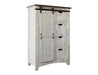 4 Drawer 1 Door Chest. Introducing our Pueblo collection, crafted from solid pine wood. This rustic collection is the perfect addition to bring your dream space to life. It features a hand-distressed finish in gray and brown on the tops.