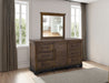 Bedroom Mirror. Beautifully designed, the Walnut Bedroom Collection perfectly blends natural elegance and modern functionality. Crafted from parota wood, it showcases timeless beauty and exceptional durability. The Walnut Collection features a translucent multi-step lacquer finish in a rich reddish-brown tone that accentuates the wood's natural beauty and grain. The Walnut mirror is designed to perfectly complement the dresser, making it ideal for adding a touch of sophistication to your bedroom décor
