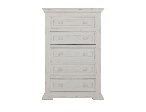 IFD Group5 Drawer Chest. The Antique Gray collection is meticulously crafted from solid pine wood, featuring a captivating hand-distressed look in a multico...