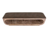 Wooden bench with a cushioned seat and open storage underneath. The Balam bench is a beautifully crafted piece made from sustainable mango and engineered teak wood. Its elegant design blends organic warmth with modern sophistication, making it a perfect addition to any space. The bench features a comfortable, deep brown cushioned seat with gently rounded corners and an open storage compartment for books, blankets, or decorative items. Ideal for an entryway, bedroom, or reading nook, the Balam bench adds effortless charm to any setting.