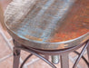 Wooden Seat Adjustable 24-30" Swivel Iron Base Barstool. Bring rustic charm to your home with the Antique Multicolor adjustable swivel barstool. This barstool features a multi-color wood grain seat and an industrial hand-wrought iron base. Its backless design allows it to easily tuck under tables and countertops, saving space.