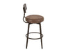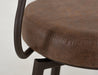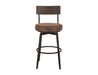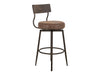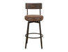Barstool. Elevate your special space with our modern industrial bar stool, designed for both style and comfort. The seat is upholstered in faux leather, offering a sleek brown finish that enhances any decor while providing a comfortable sitting experience. The backrest features an elegantly curved wooden panel, adding a warm, natural touch to the stool's contemporary aesthetic. Crafted with a sturdy metal frame, this bar stool ensures durability and stability for everyday use. With four sleek and robust metal legs arranged in a slightly flared design, it provides added stability, making it the perfect addition to your kitchen, dining area, or bar. Transform your seating arrangement with this stylish and functional piece.