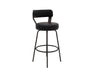 Wooden Frame & Metal Base, Upholstered Barstool. Introducing the Maison Bar Stool, a stylish and comfortable addition to your modern space. The frame features a black matte powder-coated finish that resists chipping, ensuring both durability and lasting beauty. The low, minimalistic backrest complements the seat, adding an elegant touch to the design.