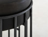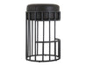 Wooden Frame & Metal Base, 30" Upholstered Barstool. Elevate your space with the stunning Merlin Barstool, a perfect blend of modern design and comfort. This stylish piece features a round, cushioned seat upholstered black faux leather, providing a luxurious and inviting seating experience. The stool's unique cylindrical metal base is adorned with vertical bars and a circular support ring, creating an eye-catching cage-like structure that enhances its contemporary and industrial aesthetic. It features a powder-coated metal frame in a black matte finish; the Merlin barstool resists chipping and ensures long-lasting durability. It is an ideal addition to any room, whether you're looking to complement your kitchen island, home bar, or stylish workspace. Experience the perfect combination of form and function with this exquisite stool.