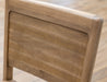 Upholstered Seat Wooden Chair. Elevate your space into a contemporary organic haven with the Mezquite chair. Constructed from sustainable mango wood with a calming brown finish and featuring an upholstered faux leather seat and backrest, this minimalist collection stands out with its sleek lines and gentle, rounded edges.