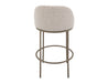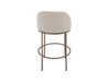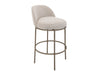 Upholstered Seat & Metal Frame Barstool. The Snow Collection stool seamlessly combines elegance and durability. It features a refined wooden frame with a seat upholstered in soft ivory fabric, providing sophistication and comfort. The sturdy metal base adds a modern touch while ensuring reliable support. Its rounded backrest and circular footrest enhance style and functionality, making this stool an ideal choice for relaxed modern and transitional interiors.