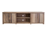 4 Door 93" TV Stand. Take your living room to the next level with the Natural Parota TV Stand, featuring a middle shelf and closed storage on both sides for your media essentials or décor, whether in your living room or bedroom. The boxy wood frame creates an overall timeless elegance, effortlessly enhancing the aesthetic of any room.