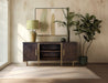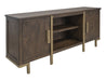 2 Door TV Stand. Introducing Onix TV stand, this modern collection offers a great design to elevate your space. Crafted from solid mango wood, complemented by a beautiful frame in a striking gold finish.