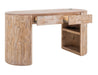 2 Drawer, Desk. Our exquisite White Balam collection is meticulously handcrafted using high-quality mango and teak wood. This simple yet striking collection is designed to infuse your space with an organic, modern aesthetic. This modern-styled desk boasts a unique, organic shape, featuring elegantly curved top and side panels, adding a touch of sophistication to your office.