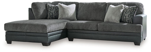 Appeal to your eye for ultra-contemporary design with this sectional. Chic and sleek in dark neutrals, it pairs cozy fabric with faux leather for i...