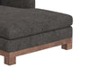 Wooden Frame & Base, Sectional. With its chunky, wide silhouette, the Samba collection infuses your living room with a touch of traditional charm. Supported by a sturdy frame crafted from solid pine wood, it rests gracefully on low-profile block feet with a rich brown hue.
