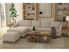 Wooden Frame & Base, Two-Cushion Sectional Right-Arm Loveseat. With its chunky, wide silhouette, the Samba collection infuses your living room with a touch of traditional charm. Supported by a sturdy frame crafted from solid pine wood, it rests gracefully on low-profile block feet with a rich brown hue.