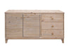3 Drawer 2 Door Console. Drawing inspiration from ancient Egyptian architecture, the Giza collection, crafted from lightly distressed pine, pays homage to the intricate textures found in Protodoric columns. The gentle hues of these historic columns serve as a guiding influence in shaping the wood tones of this collection.