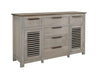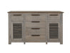 Designed with practicality in mind, the buffet includes six spacious drawers and two doors, providing ample storage for all your dining essentials. Its sleek metal pulls, featuring a modern rectangular design, are visually appealing and designed to resist chipping, ensuring longevity.