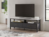 Imagine a TV stand that adds sophisticated and minimal boho style to your home with a stylish storage solution. This stand does just that. Its sleek design and replicated marble top create an upscale ambiance that's perfect for displaying your television and organizing your space.