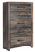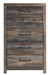 When merged in just the right way, rustic and industrial styles can make one happy marriage. Case in point: this bedroom chest. A refined take on barn board beauty, its complex, replicated wood grain showcases hints of burnt orange and teal tones for a sense of weatherworn authenticity. Elongated drawer pulls elevate the aesthetic.