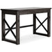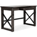 Love an urban farmhouse aesthetic? Make it work to your advantage with this beautifully styled desk. This simply striking choice in home office furniture has an unmistakable farmhouse feel thanks to design elements including a gray decorative wood grain laminate contrasted with crossbuck rails, metal accents and a stretcher in black. Perfect for office supplies, the desk includes a handy center drawer with hardware-less aesthetic to help keep your desk top clutter free