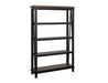 4 Shelves, Bookcase. The Loft Brown Collection offers a variety of high- and low-finish colors, making it a striking addition to any room's décor. This bookcase seamlessly combines the strength of metal with the warmth of wood, adding a stylish industrial touch to any living space while providing ample storage for books, decor, and more. Its sturdy construction ensures this bookcase will remain a reliable and enduring piece in your home for years.