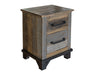 2 Drawer Nightstand. The Loft Brown Collection is constructed using pine wood that has been hand-stained and distressed, complemented by hand-forged iron hardware. This beautiful collection features a wide range of high and low finish colors, making it a striking addition to any room décor you choose to design.