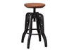 Wooden Round Seat Adjustable 24-30" Swivel Iron Base Barstool. Our Parota adjustable swivel barstool is the ideal addition to your kitchen or bar. This exceptional barstool features a black hand-forged iron base and a Parota wooden round seat. Its backless design allows it to easily tuck under tables and countertops, saving space.