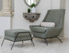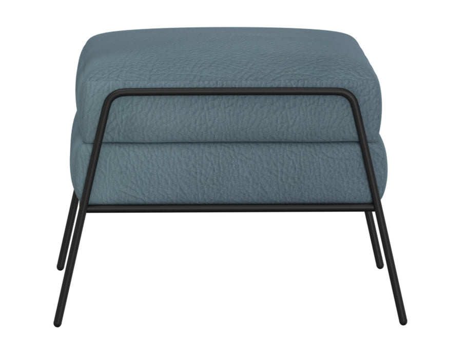 Wooden Frame & Metal Base, Footstool Ottoman. This understated ottoman brings a stylish and functional design to your living room or bedroom. The solid wood frame is wrapped in polyester in your choice of color, and it's accented with metal legs. This square ottoman is filled with foam and sinuous springs for cushioned support while you sit down or kick up your feet.