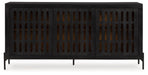 This accent cabinet showcases high-end style with a captivating design. A cleverly placed cutout offers a sneak peek inside, making it a versatile choice for use as a buffet, console or media cabinet. Contemporary and casual, this piece epitomizes laid-back luxury.
